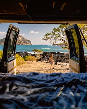 Waking up on the beach in a van and exploring the beautiful coast. Oahu, Hawaii.