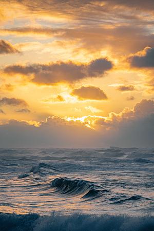 Minimalistic image of waves rolling in on the North Shore at Sunset. Oahu, Hawaii.